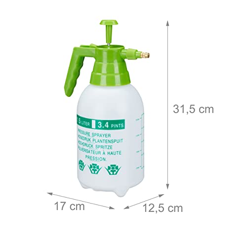 Relaxdays - Relaxdays, White/Green Pressure Sprayer, Adjustable Brass Nozzle, Garden, Plant Mister, Pest Control, 1.5 L, PE