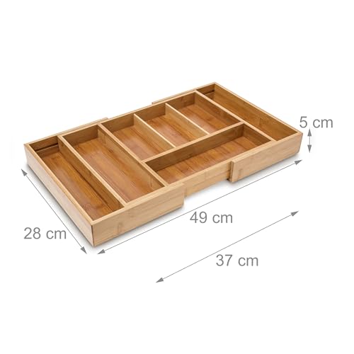 Relaxdays - Relaxdays XL Cutlery Tray, HLP: 5 x 48.5 x 28 cm, Bamboo Cutlery Holder, Kitchen Organizer, Natural Color, Light Brown