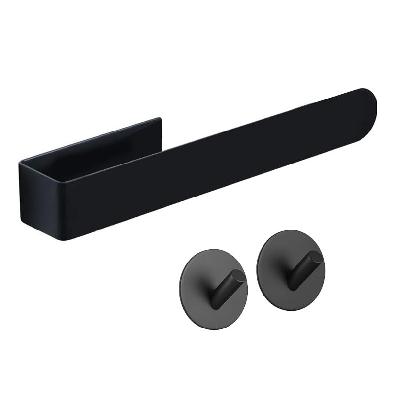 relbow - Bathroom Towel Rail Without Drill, Includes Two Hooks for Towels, Bathrobe … Extra Strong Self Adhesive Towel Bar, Bathroom Accessory (Black)