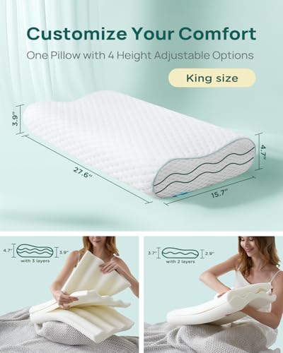 - 【إسفنج ميموري فوم بطيء الارتداد】- تتميز وسادة عنق الرحم المصنوعة من رغوة الذاكرة الخاصة بنا بإسفنج ميموري فوم ممتاز معتمد من سيرتيبور-يو اس. يحافظ على الدعم والراحة الكافيين قبل وبعد ضبط الارتفاع. ارتقِ بتجربة نومك مع وسادتنا المصنوعة بعناية