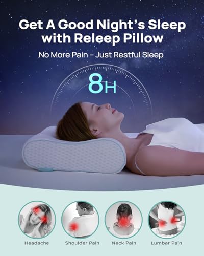 Releep - وسادة رقبة عنقية للنوم على الجانب مصممة بشكل مريح من الميموري فوم الطبية قابلة للتعديل مع خاصية التبريد لتخفيف آلام الرقبة ومناسبة للنوم على الظهر والبطن من ريليب