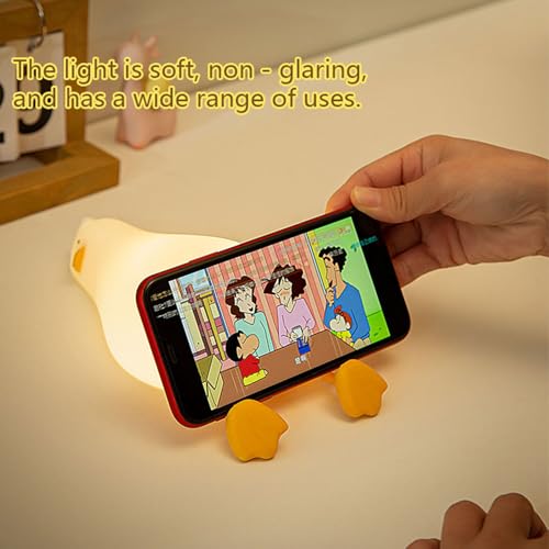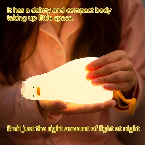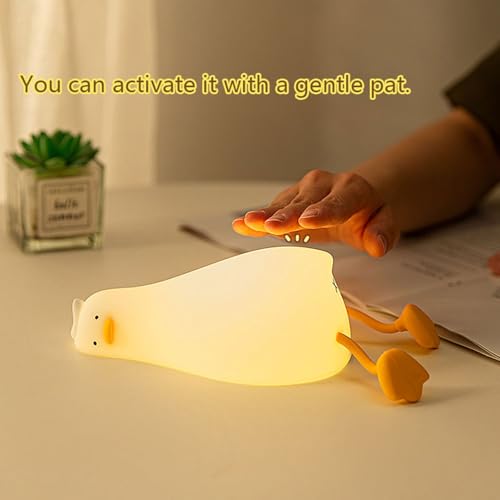 RELOADING - RELOADING Lying Flat Duck Night Light, LED Squishy Duck Lamp, Cute Light Up Duck, Silicone Dimmable Nursery Nightlight, Rechargeable Bedside Touch Lamp for Breastfeeding, Finn The Duck