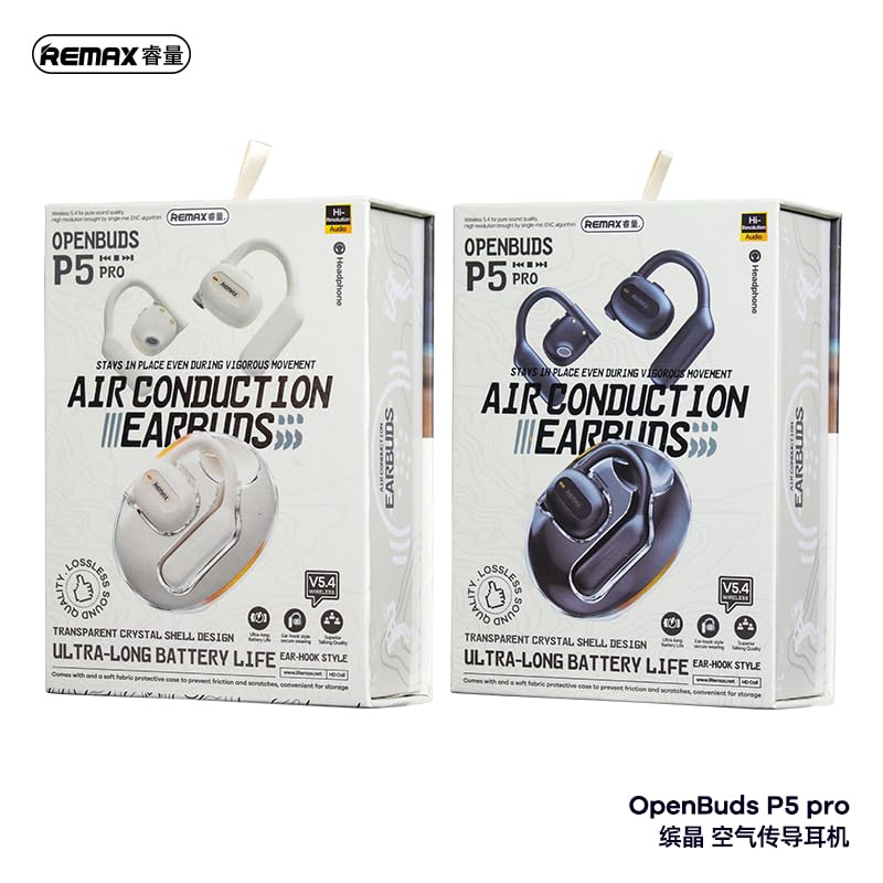 Remax - Remax OpenBuds P5 Pro Air Conduction Earbuds, Wireless Bluetooth 5.4, Blue/White, IPX4 Waterproof, 60mAh/240mAh Battery, Type-C Charging, 8-12 Hours Playtime, Ear-Hook Design (Blue)