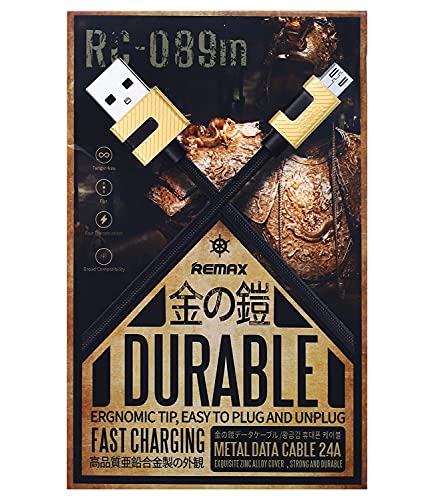 Remax - Remax RC-089M Metal Data Cable Fast Charging Ergnomic Tip Flat Design 2.4A Micro USB For Mobile Phones 100 cm - Black Yellow