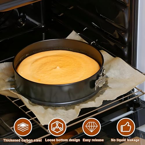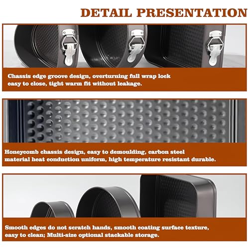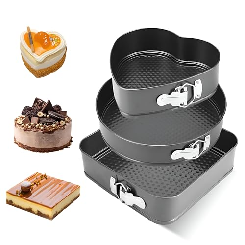 Generic - صواني كيك سفلية قابلة للازالة - مجموعة من 3 قطع غير لاصقة بتصميمات دائرية ومربعة، هيكل من الستيل الكربوني، بقطر 20 سم الى 24 سم، مثالية للكعك والحلويات الرقيقة