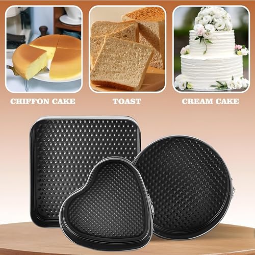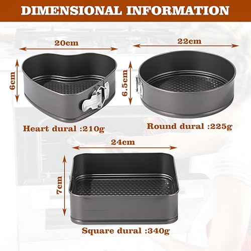- تتضمن هذه المجموعة متعددة الاستخدامات ثلاثة أحجام وأشكال مختلفة للأواني - 20 سم على شكل قلب و22 سم دائري و24 سم مربع - مما يتيح للخبازين صنع كعك متعدد الطبقات أو حلويات أنيقة أو كيش لذيذ لأي مناسبة، من أعياد الميلاد إلى تجمعات العطلات، مع مرونة سلسة في التصميم والتقسيم.