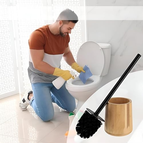 Generic - فرشاة تواليت برأس قابل للإزالة وحامل من البامبو - تصميم متين وصديق للبيئة مع رأس سيليكون مضاد للبكتيريا وأنيق للنظافة والراحة