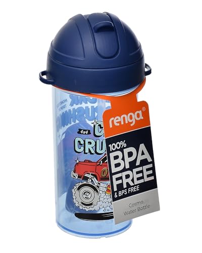 Renga - زجاجة مياه بلاستيكية مع شفاطة من كوزمو، 415 مل، ازرق