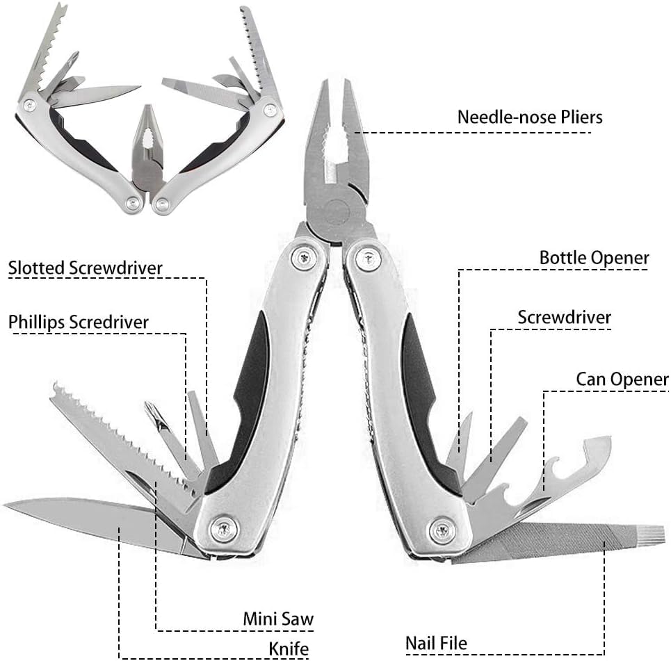 RENOVO - RENOVO Multitool Plier, Stainless Steel Pocket Multi Tool For Camping, Survival Gear Safety Locking Camping Accessories With Cutter, Bottle Opener, Screwdriver Silver Color