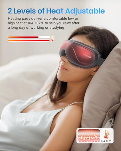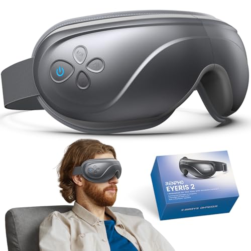 RENPHO - جهاز تدليك العين ايريس 2 المطور مع تقنية التسخين والاهتزاز والضغط بخمسة أوضاع قابل لإعادة الشحن مع بلوتوث لتشغيل الموسيقى، لعلاج جفاف وإجهاد العين والهالات السوداء وتحسين جودة النوم من رينفو