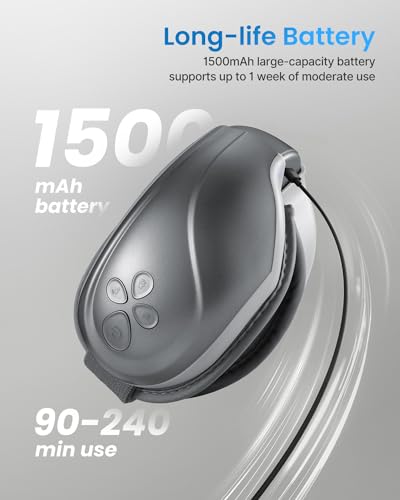 - خيار مثالي كهدية أنيقة وسهلة الحمل: اجعل قناع تدليك العين هذا رفيقك المثالي في المنزل وأثناء التنقل أو خلال رحلات العمل. تصميم قابل للطي على شكل صدفة يسمح لك بحمل جهاز التدليك إلى أي مكان بكل سهولة. بفضل البطارية القابلة لإعادة الشحن بسعة 1500 مللي امبير، لا تحتاج إلى توصيل الجهاز بمصدر كهرباء أثناء الاستخدام. الشحن الكامل يكفي لمدة أسبوع واحد من الاستخدام اليومي المعتدل بدون أسلاك.