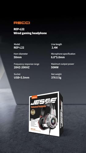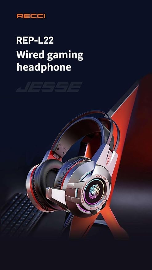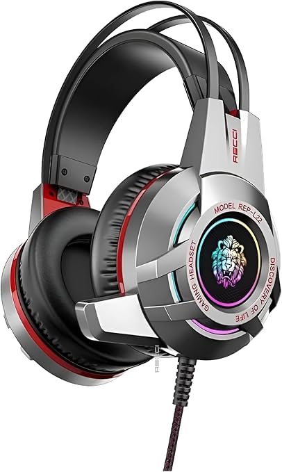 Generic - سماعات ألعاب سلكية احترافية، مع إضاءة LED، ميكروفون عالي الحساسية، وحدة تشغيل 50 مم، USB و3.5 مم، للألعاب الإلكترونية REP-L22