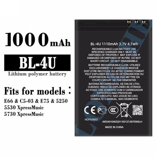 - Compatible with Nokia E66, C5-03 5250 5530 5730 206 515 Asha 300 500 8800 Arte E75 (Model: BL-4U)