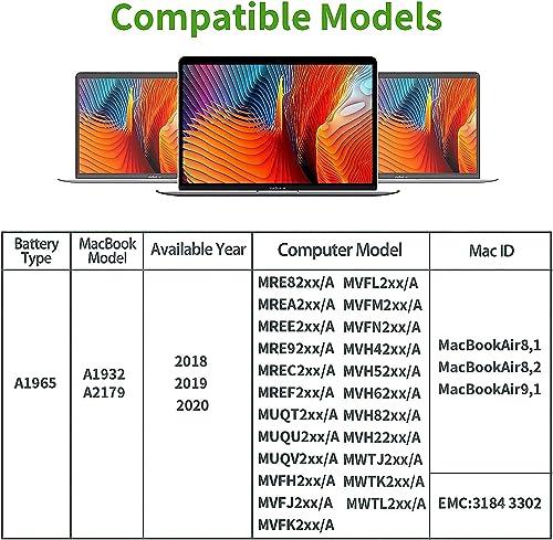 - الموديلات المتوافقة: مناسبة فقط لجهاز ماك بوك اير 13 انش (موديل A1932 والموديل A2179) إصدار 2018 2019 2020