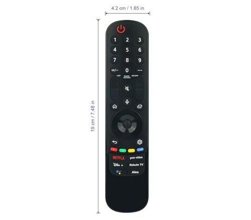 - جهاز تحكم عن بعد بديل سحري طراز MR22GA وAKB76039902 وAN-MR22GA متوافق مع تلفزيون ال جي نانو سيل كيو ان اي دي واو ال اي دي ايفو ميني بإضاءة ليد وبدقة 4K و8K والترا اتش دي وسمارت ويب او اس مع وظيفة التعريف عن الصوت طراز 70NANO75UQA وOLED77C2PUA
