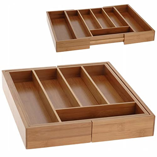 REPLOOD - REPLOOD Cutlery Organizer for Drawer Bamboo Wood Width Adjustable from 38x28 to 40x50 cm Universal for all Drawers
