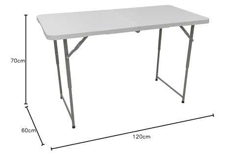 - STRONG AND RELIABLE – The table top is made out of a weather resistant light weight aluminium construction and is very easy to keep clean. Size: 120cm x 60cm x 70cm Made from sturdy materials, the foldable table is built for the long haul. As it has been designed for versatility, the sturdy materials can withstand consistent outdoor use without becoming corroded or damaged by elements. Furthermore, the surface is easy to clean and wipe following buffets and BBQ’s.