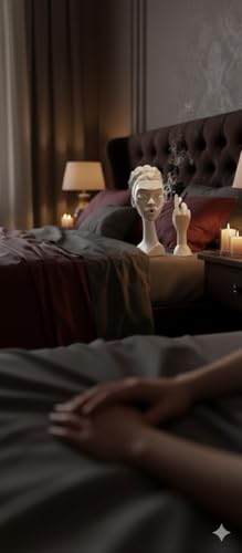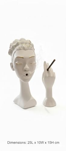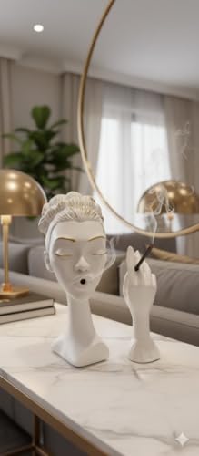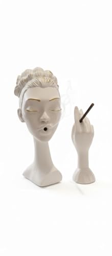- Unique Art Design:Realistic Resin Figurine for a woman's head with mysterious eyes and a quiet smile with an incense hand, 10 inch high decorative artwork