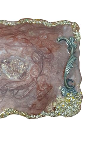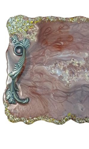- Handmade artwork, a serving tray made of resin and inlaid with gold leaf