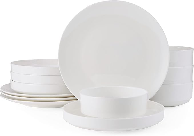 Generic - طقم عشاء بتصميم مقاوم من 12 قطعة يكفي لـ 4 أفراد، لون أبيض