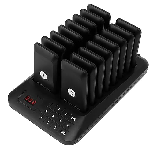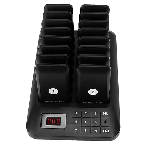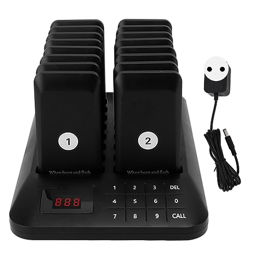AMONIDA - Restaurant Pager, 800m 16 Receiver Restaurant Call System Buzzer ABS Beep Waterproof LED Flash Reminder 100-240V for Food Truck (EU Plug)