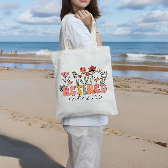 HZYH - هدية تقاعد للنساء، شنطة توت قماشية رائعة بتصميم زهور، هدية مثالية للتقاعد مثالية للتسوق والبقالة والسفر او الاستخدام اليومي، شنطة انيقة ومتينة قابلة لاعادة الاستخدام
