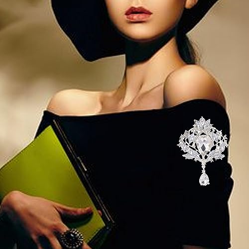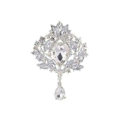 HSQYJ - Retro Elegant Crystal Water Drop Brooches Pins Fashion Beautiful Created Rhinestone Flower Brooch Pin for Women Girl Party Dance Wedding Banquet Gold