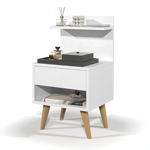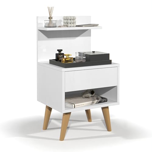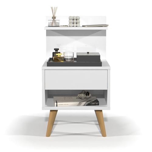 Gaio Marcas e Patentes - Retro Nightstand with Drawer Shelf and Niche Sleep - White