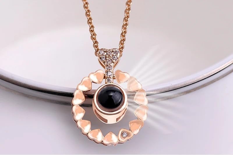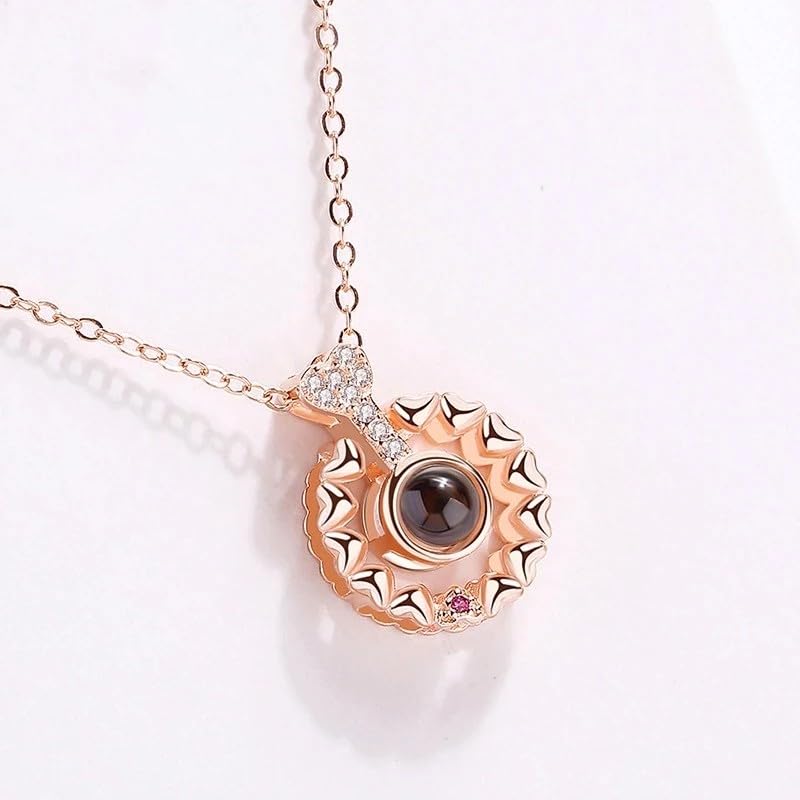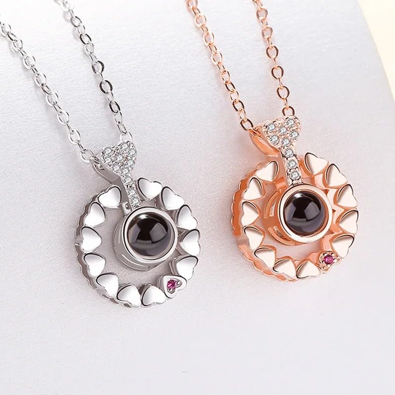 Generic - سلسلة كلاسيك بتصميم قلوب دائرية من الفضة عيار 925 وعبارة (I Love You) بـ 100 لغة مناسبة للأزواج 2023، مجوهرات رومانسية عصرية (لون وردي ذهبي)
