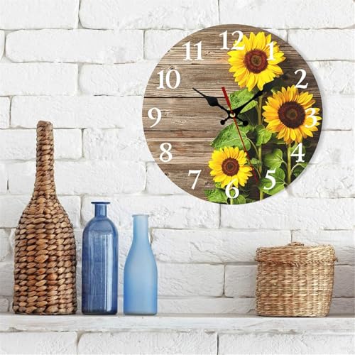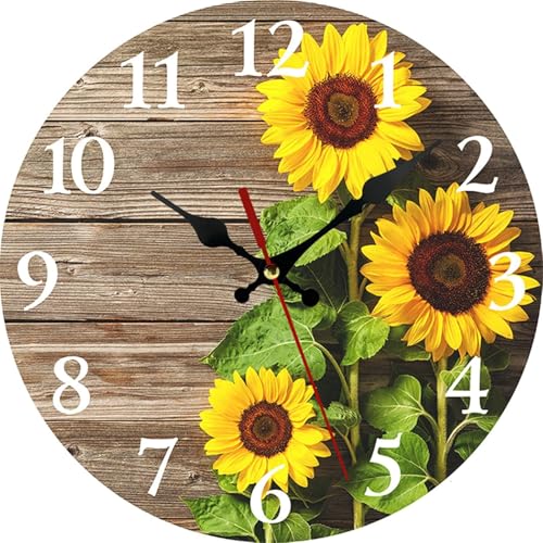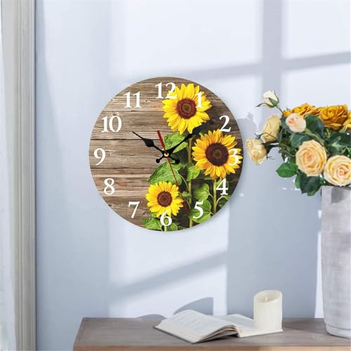 Generic - ساعة حائط عتيقة، ساعة حائط بتصميم زهرة عباد الشمس، صامتة لا تصدر صوت تكتكة تعمل بالبطارية، ساعة حائط خشبية عتيقة، ساعة حائط بأرقام رومانية، ساعة حائط معلقة مزخرفة