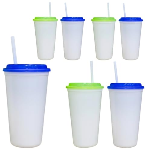 Generic - Reusable Cold Drink Cups Set, 6 Pack White Plastic Tumblers with Colorful Lids, 380ml Capacity, Modern Style with Colourful Design, Includes Straws for Beverages, Matte Finish
