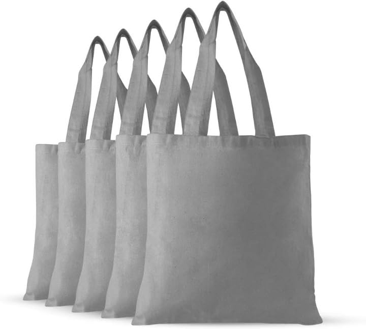 Generic - Reusable Cotton Canvas Grocery Bag, Reusable Tote Bag 15x16 with Handle, Pack of 3, Grey