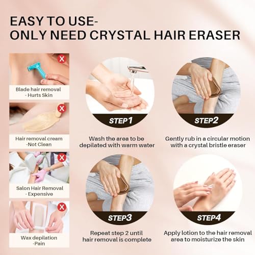 - 【Painless Crystal Hair Eraser】Our crystal hair eraser is a made of premium hair removal tool made with high quality glass and ABS materials. With its smooth surface and reliable construction, this hair eraser ensures a safe and efficient experience. Utilizing nano technology, it gently exfoliates dead skin cells and improves skin tone, leaving you with a rejuvenated appearance. Say goodbye to razor bumps cuts and embrace the benefits of our Crystal Hair Eraser!