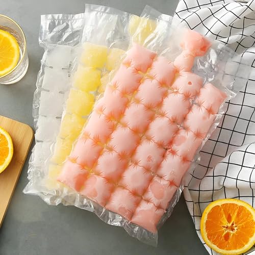 Generic - قوالب ثلج قابلة لاعادة الاستخدام - صواني تجميد مرنة للعصائر والماء، تتضمن 24 مكعب و10 اكياس باحجام قابلة للتخصيص وتخزين فعال