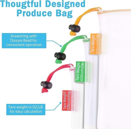 - REUSABLE DESIGN: Set of 15 premium mesh produce bags in 3 different sizes with drawstring closure for convenient storage and organization