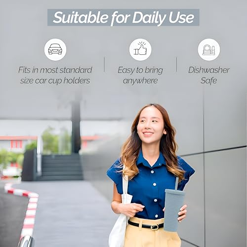 - مصمم ليناسب حاملات أكواب السيارة القياسية بثقة، يوفر هذا الكوب ثباتًا ممتازًا أثناء القيادة، مما يقلل من مخاطر الانسكاب. يضمن تصميمها المريح والجزء الخارجي غير القابل للانزلاق قبضة مريحة وإمساك آمن، مما يجعلها مثالية لمهام التنقل أو السفر.