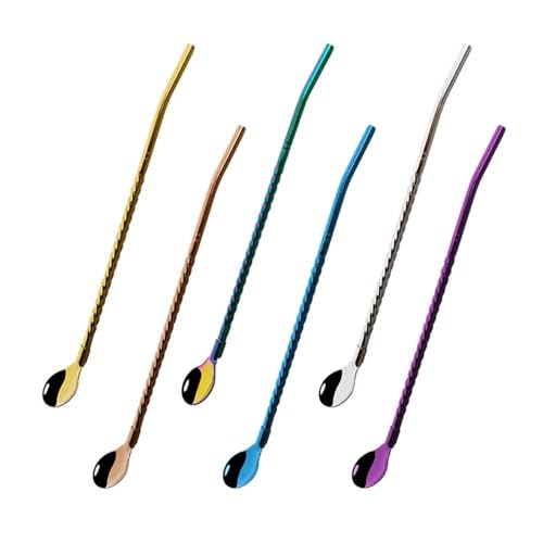 Generic - معالق قوس قزح قابلة لإعادة الاستخدام بمقبض شفاطة مجموعة من 6 قطع، مصنوعة من الفولاذ المقاوم للصدأ المطلي بألوان قوس قزح،- تأتي مع فرشاة تنظيف لتنظيف سهل
