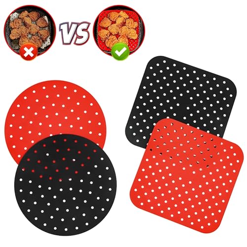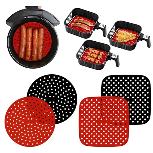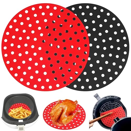Generic - بطانات سيليكون قابلة لإعادة الاستخدام لمقالي الهواء، ملحق مقلاة الهواء لتحميص الخبز في الفرن ومكبس التورتيلا، عبوة من قطعتين (2 مدورين)