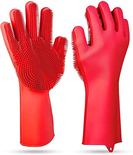generic - Reusable Silicone Dishwashing Gloves | Pair Of Rubber Scrubbing Gloves For Dishes | Wash Cleaning Gloves With Sponge Scrubbers For Washing Kitchen, Bathroom, Car and More, Red, 14.5 Inchco4133