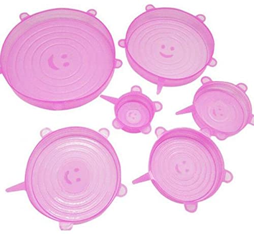 generic - Reusable Silicone Stretch Set of 6 Lids For Bowl Cup Pot Pan Plate Dish Fruit Vegetable Covers Flexible Cooking Seal Microwave Mugs Lids Apply to All Kinds of Food Storage Container (Pink) 160