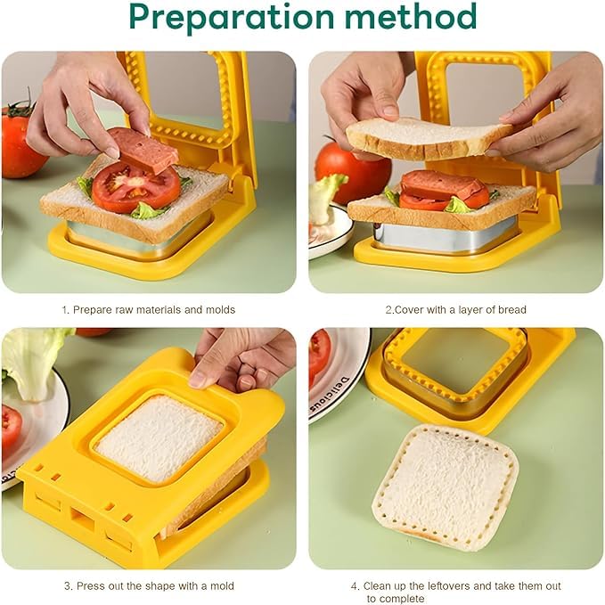 - Simple two-step operation: just add your favorite filling on the bread, press down the cutter and close in one smooth motion. A sharp stainless steel rim cuts and closes creating a fun little sandwich every time. - Multiple shapes for more fun: choose from square, round, or hearts to delight children and adults alike, making snack time exciting and visually attractive.