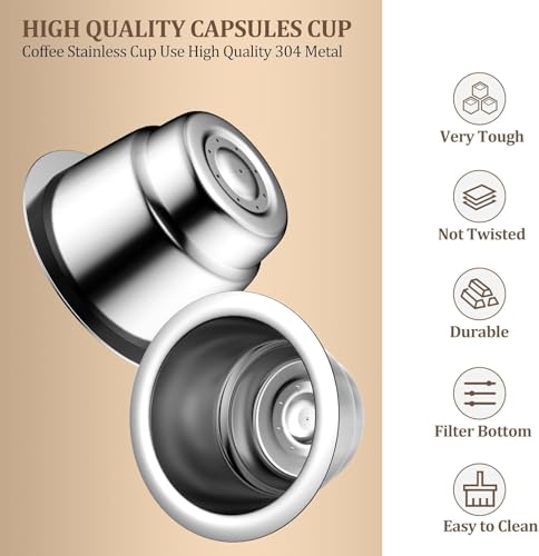 - Coffee Capsules, Stainless Steel, Reusable, Nespresso Compatible, Eco-Friendly, Home Coffee, Coffee Setting, Capsule Lids