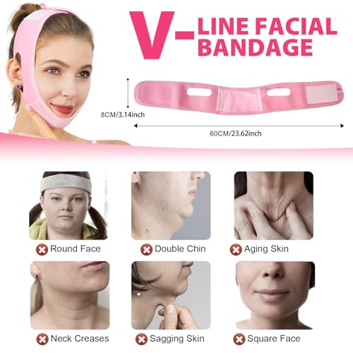 - تصميم مبتكر: قناع شد الوجه على شكل حرف V قابل لإعادة الاستخدام مع حزام للذقن للاستخدام الليلي لمنع الترهل وتحسين ملامح الوجه.