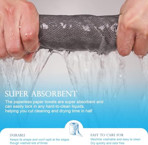 Generic - Reusable Washable Paper Towel Roll:25 Pcs Tearless Paper Towels 12 x 12 Inch Eco Friendly Absorbent Reusable Washable Kitchen Towels No Waste (Grey)