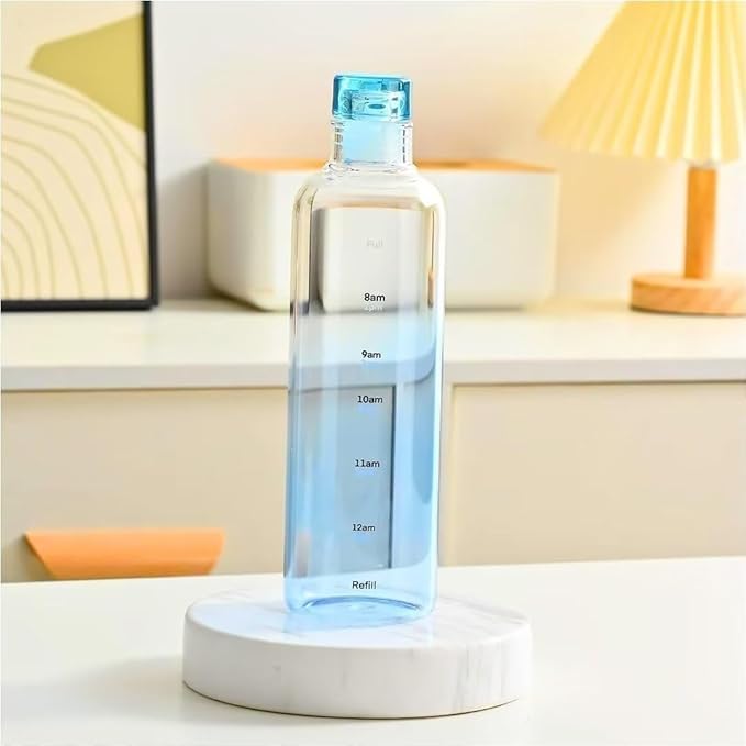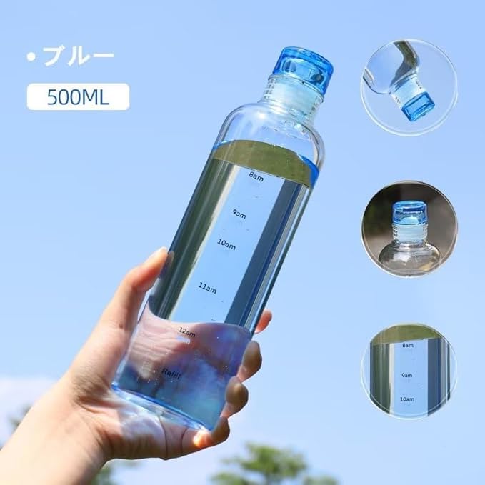 Happy Home - Reusable Water Bottle, Transparent Plastic, Capacity 500 ml with Time Marker, Large Capacity Leakproof Drink Bottle Transparent Milk Juice for Men Women Gym Outdoors Sports Fitness (Blue)
