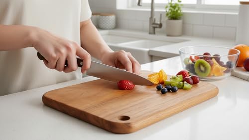 - PREMIUM ACACIA WOOD - Durable, Naturally Beautiful, and Knife-Friendly. Crafted from sustainably sourced Acacia wood, this acacia wood cutting board boasts rich, warm tones that elevate any kitchen or serving spread. It's smooth surface is gentle on knives, reducing dulling over time