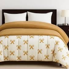 - REVERSIBLE DESIGN: Features a beautiful gold bow pattern on cream background on one side and solid tan colour on the reverse, allowing you to change your bedroom décor effortlessly