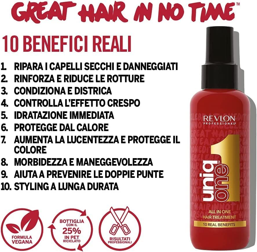 - عبوة حصرية من قطعتين: جميع الفوائد التي تعود على شعرك بفضل مستحضر ريفلون الاحترافي يونيك ون الذي يترك في المتناول
