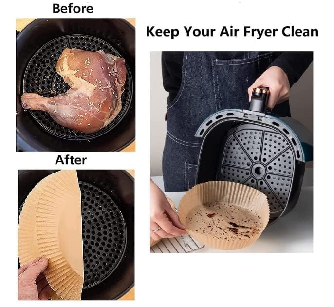 - 🍤【سهلة الاستخدام】 تم تصميم بطانات القلاية الهوائية غير اللاصقة التي تستخدم لمرة واحدة بشكل وعاء دائري من أجل احتواء أفضل للطعام، لا حاجة إلى تمزيق أو طي أو قطع أو ثني ورق الخبز، ببساطة قم برمي بطانة القلاية الهوائية بعد الاستخدام.