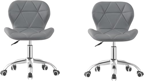 Reyad Group, - Reyad Group Modern Desk Chairs Comfortable Study Chair Swivel Home Chair Height Adjustable PU Leather Desk Chair with Lift Chrome Legs for Home Bedrooms 2 Pack - Grey
